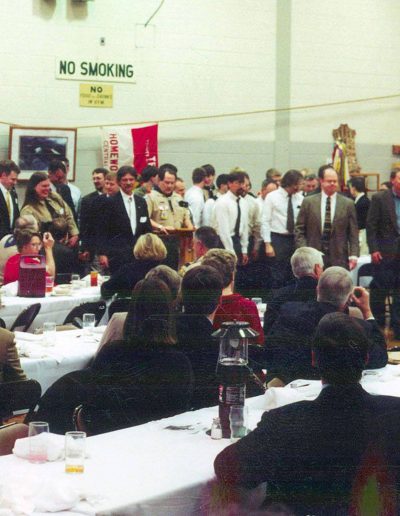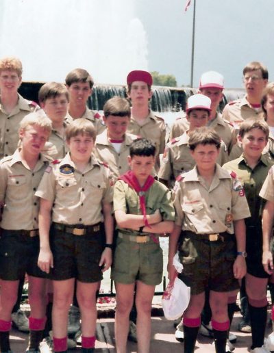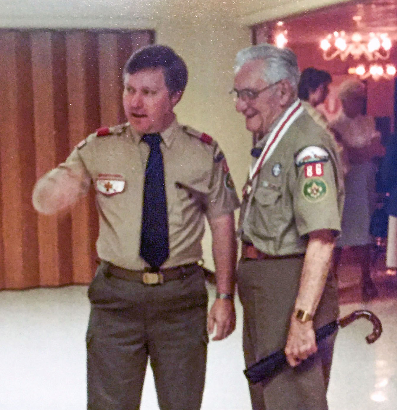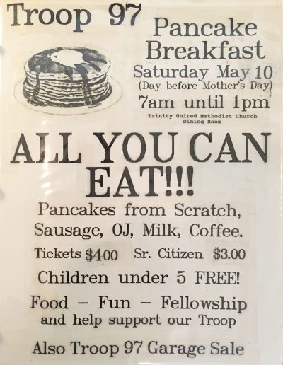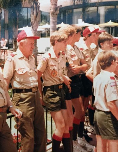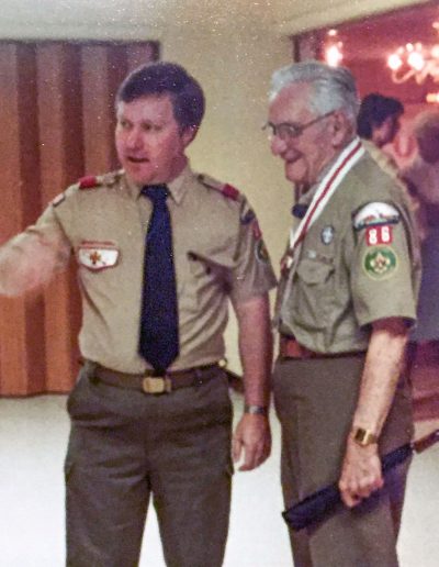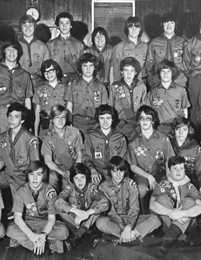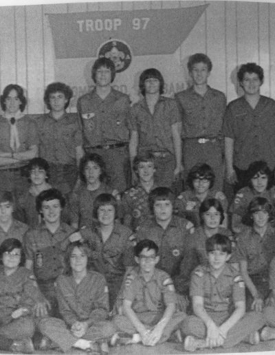 A booklet prepared for Troop 97’s Silver Anniversary Banquet on November 31, 1975, showed the following men had served as scoutmasters: J. W. Nielsen, 1950-51; Charles S. Fletcher, Sr., 1951-52; Morton H. Perry, Sr., 1952-60; Harold E. Knapp, 1960-63; A.D. Roper, 1963 70; Richard E. Cunningham, 1970-73; and Willis C. (“Bill”) Rogers, Sr., 1973-77. Subsequent scoutmasters were: Don R. Hansen, 1977-81; and Lawrence A. Johnson , 1982-88.