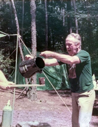 In the 1930s, when Perry was scoutmaster at McCoy, he and his scouts used to ride the Edgewood street car past the young Trinity church on their way to Camp Andrews for weekend camps. The streetcar line passed behind Trinity Methodist and Edgewood Baptist Churches, passing over a wooden trestle spanning a marshy area behind Dawson and turning down to Oxmoor Road and finally to Broadway to where the tracks ended near the intersection of the Green Springs Highway and Lakeshore Drive. From this terminus, scouts from all over the Birmingham area used to hike up over Shades Mountain, down through the present site of Hoover, and turned west to the to camp on Alabama Highway 150, a short distance from the present-day Riverchase Gallleria*. Many troops maintained their own cabins around the lake at Camp Andrews. The camp was closed in the late 1940s and sold to a local lumber company. It was replaced with Camp Arrowhead near Clanton in the early 1950s.